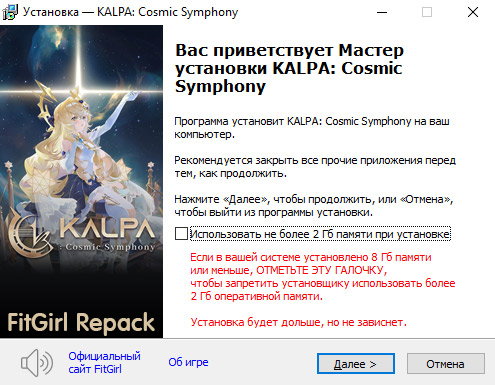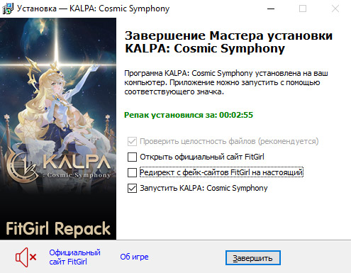 - Репак основан на ISO-образе KALPA.Cosmic.Symphony-TENOKE: tenoke-kalpa.cosmic.symphony.iso (6,541,348,864 байта)