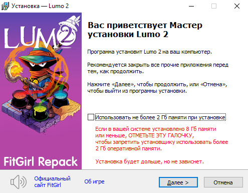 - Репак основан на ISO-образе Lumo.2-TENOKE: tenoke-lumo.2.iso (2,303,000,576 байт)