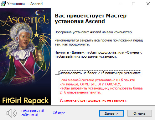- Для установки репака требуется минимум 2 Гб свободной оперативной памяти (включая виртуальную)