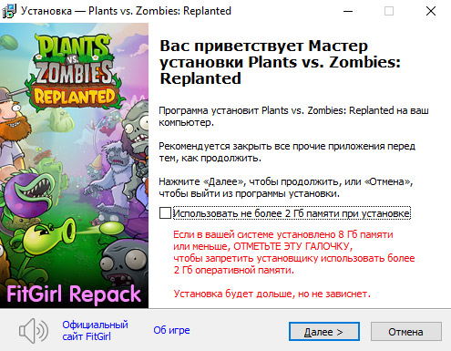Plants vs. Zombies: Replanted v1.2.1173.0 Дата выпуска: 23 октября 2025 Жанр: Arcade, Tower defense, Side, 2D, Zombies Разработчик: PopCap Games, The Lost Pixels Издательство: Electronic Arts Движок: Unity Пользовательские оценки в Steam: 49% обзоров пользователей - положительные (533 рецензии) Язык интерфейса: Английский, Французский, Немецкий, Испанский - Испания, Японский, Португальский - Бразилия, Упрощенный Китайский, Традиционный Китайский Язык озвучки: нет Тип издания: Repack Лекарство: вшито (Goldberg) Системные требования: ОС: Windows 10 x64 и выше Процессор: AMD FX-6300 / 3rd gen, Intel i3 и лучше Память: 4 Гб Видео: Интегрированная графика Intel или лучше DirectX: 12 Место на диске: 1.5 Гб