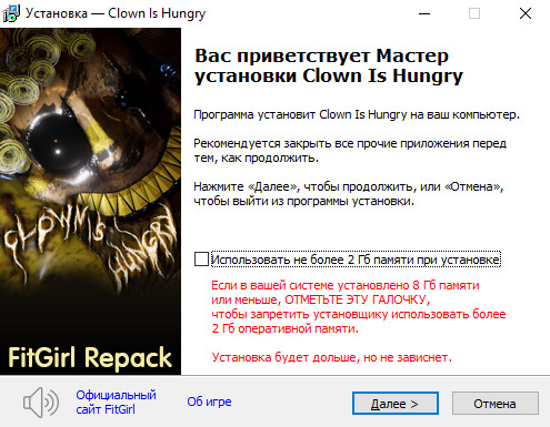 - Репак основан на ISO-образе Clown.Is.Hungry-TENOKE: tenoke-clown.is.hungry.iso (2,549,598,208 байт)