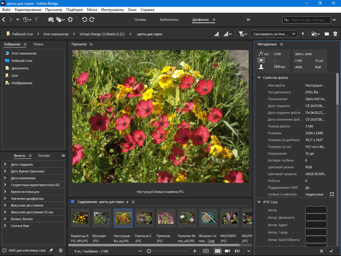 Описание: Adobe Bridge — это мощное средство для управления творческими ресурсами, позволяющее быстро и легко просматривать, выбирать, организовывать, редактировать и публиковать несколько ресурсов. Вы можете редактировать метаданные, добавлять ключевые слова, метки и рейтинги для ресурсов, упорядочивать ресурсы в коллекции, а также находить ресурсы, используя мощные фильтры и расширенные функции поиска по метаданным. Кроме того, можно работать с библиотеками и публиковать на Adobe Stock непосредственно из
