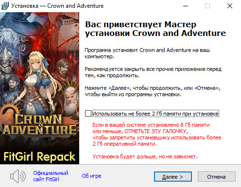 - Для установки репака требуется минимум 2 Гб свободной оперативной памяти (включая виртуальную)