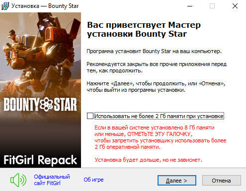 - Для установки репака требуется минимум 2 Гб свободной оперативной памяти (включая виртуальную)