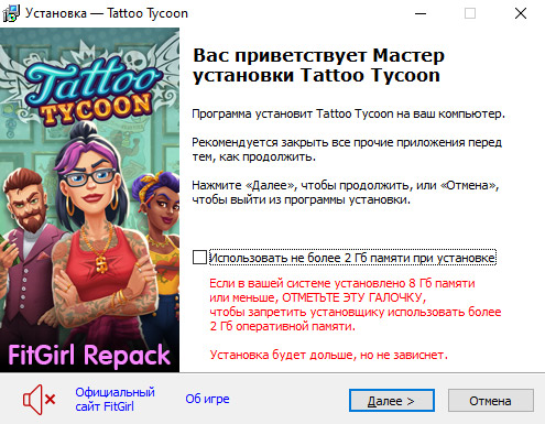 - Репак основан на ISO-образе Tattoo.Tycoon-SKIDROW: sr-tattootycoon.iso (1,997,441,024 байта)