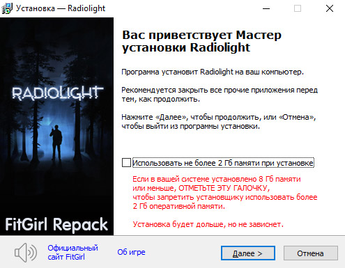 - Для установки репака требуется минимум 2 Гб свободной оперативной памяти (включая виртуальную)