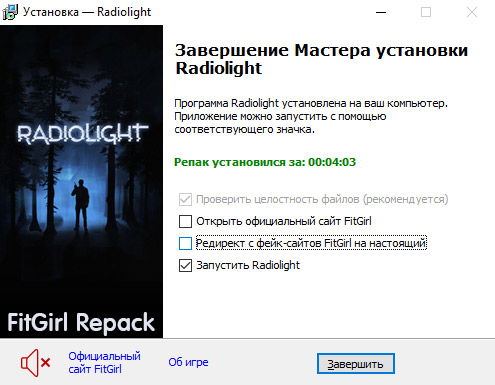 - После установки доступна опция проверки контрольных сумм всех файлов, чтобы убедиться, что репак установился нормально
