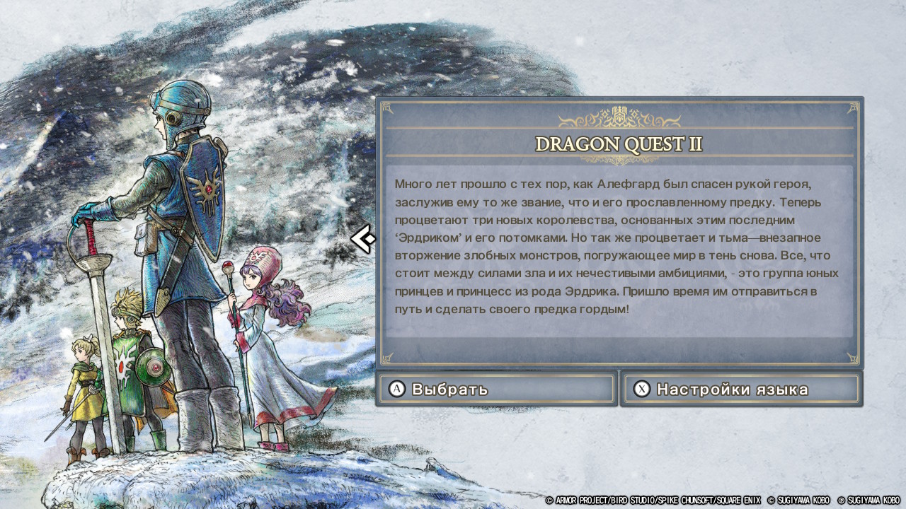 DRAGON QUEST II С тех пор, как наш герой спас Алефгард и получил тот же титул, что и его знаменитый предок, прошло много лет. Потомки нового Эрдрика основали три королевства, жившие в мире и процветании. Но тьма вернулась: внезапное вторжение коварных чудовищ снова поставило мир на грань катастрофы.