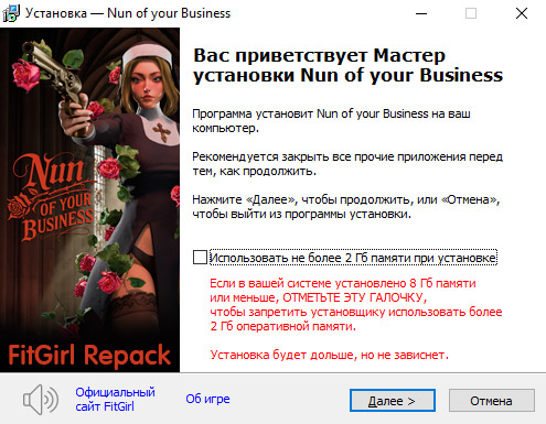 - Для установки репака требуется минимум 2 Гб свободной оперативной памяти (включая виртуальную)