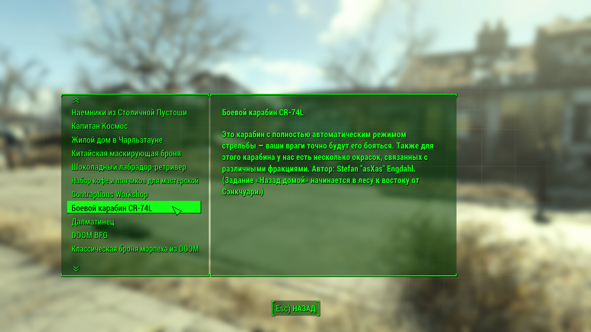 Если вам, например, нужна только чистая игра без этих творений, вы можете удалить/перенести файлы размещённые в папке Data и название которых начинается с букв cc и vc. Какие файлы отвечают за какое творение я не знаю, их много и выяснять это у меня нет ни времени, ни желания, могу сказать только, что файлы имеющие в названии vchgs001fo4_ncrbeasthunter отвечают за творение "Tale of the Beast Hunter", кстати из-за его наличия при начале новой или продолжения уже сохранённой игры вы получите предупреждение, что достижения будут недоступны, но я думаю для пиратки это не особо важно Улыбаюсь