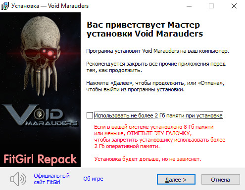 • Для установки репака требуется минимум 2 Гб свободной оперативной памяти (включая виртуальную)