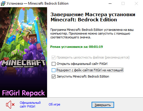 - Репак основан на ISO-образе Minecraft.Bedrock.Edition-RUNE: rune-minecraft.bedrock.edition.iso (988,315,648 байт)