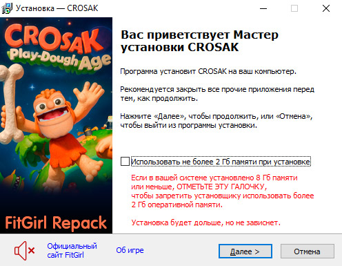 • Для установки репака требуется минимум 2 Гб свободной оперативной памяти (включая виртуальную)