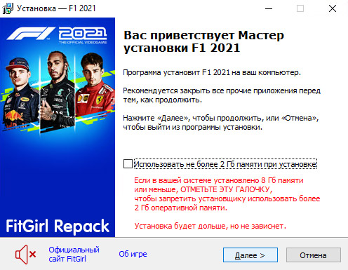 • Для установки репака требуется минимум 2 Гб свободной оперативной памяти (включая виртуальную)