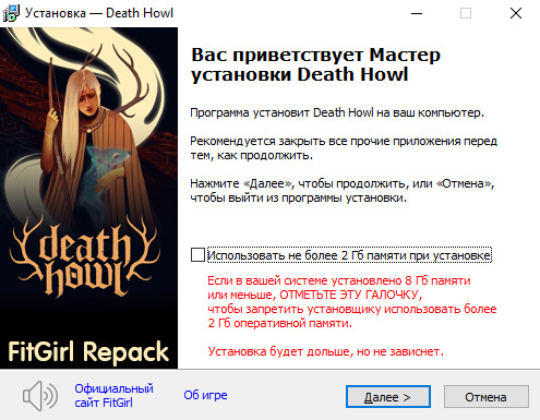 - Репак основан на ISO-образе Death.Howl-TiNYiSO: tn-deathhowl.iso (4,934,522,880 байт)