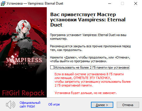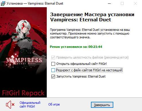- Репак основан на ISO-образе Vampiress.Eternal.Duet-TENOKE: tenoke-vampiress.eternal.duet.iso (18,693,902,336 байт)