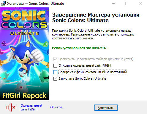 - Репак основан на ISO-образе Sonic.Colors.Ultimate-voices38: voices38-sonic.colors.ultimate.iso (17,048,086,528 байт)