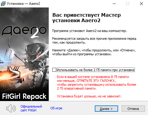 - Для установки репака требуется минимум 2 Гб свободной оперативной памяти (включая виртуальную)