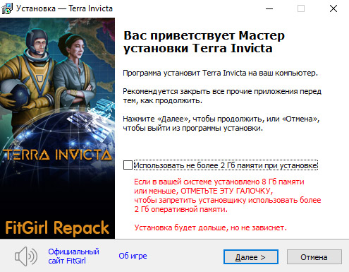 • Для установки репака требуется минимум 2 Гб свободной оперативной памяти (включая виртуальную)