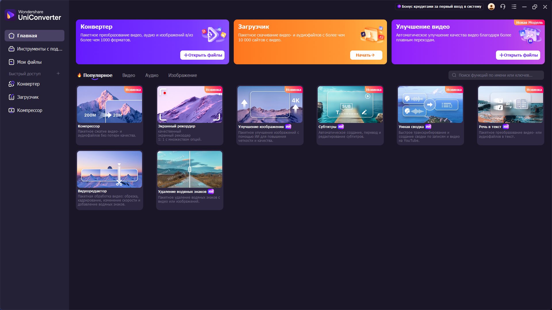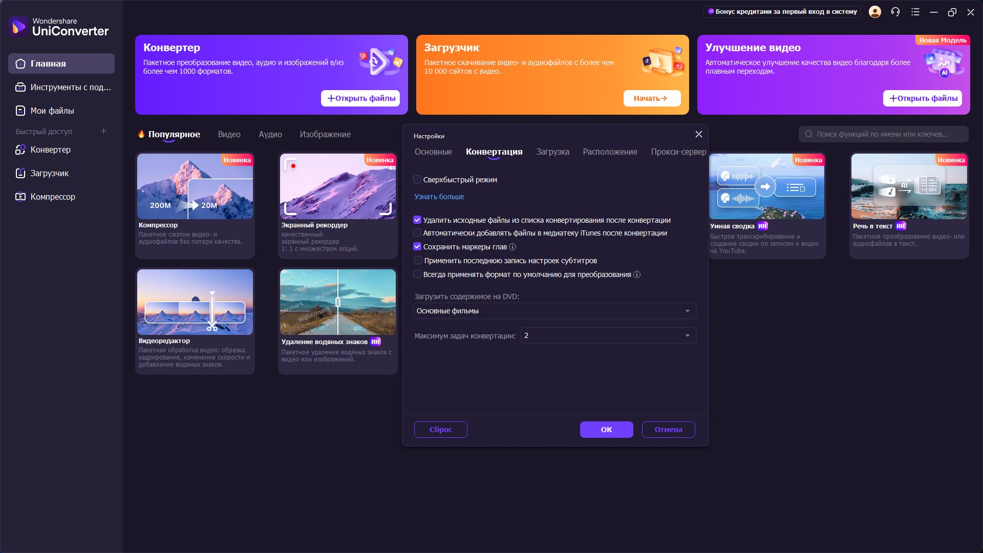 Wondershare UniConverter также предлагает полный набор оптимизированных видео инструментов, которые вам непременно пригодятся.
