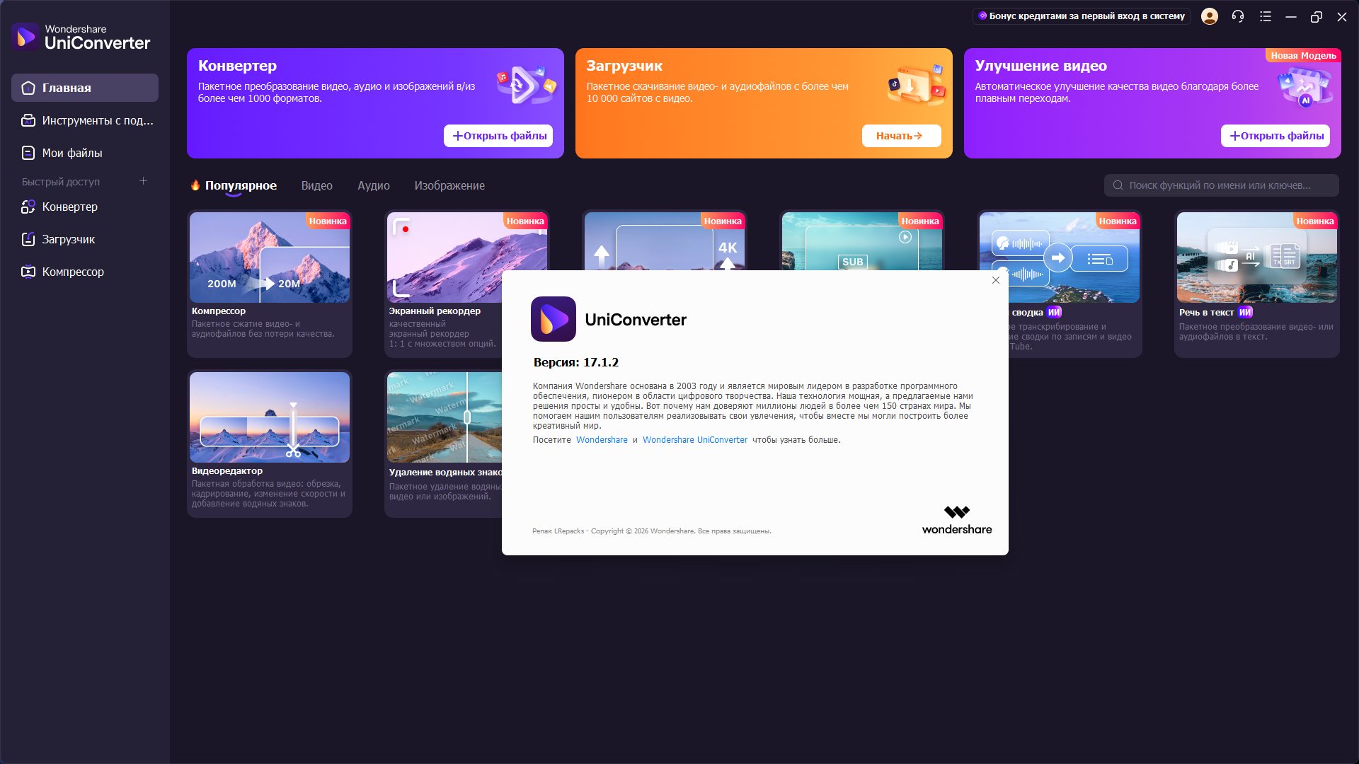 Wondershare UniConverter 17.1.2.459 RePack (& Portable) by elchupacabra [2026, Multi/Ru]