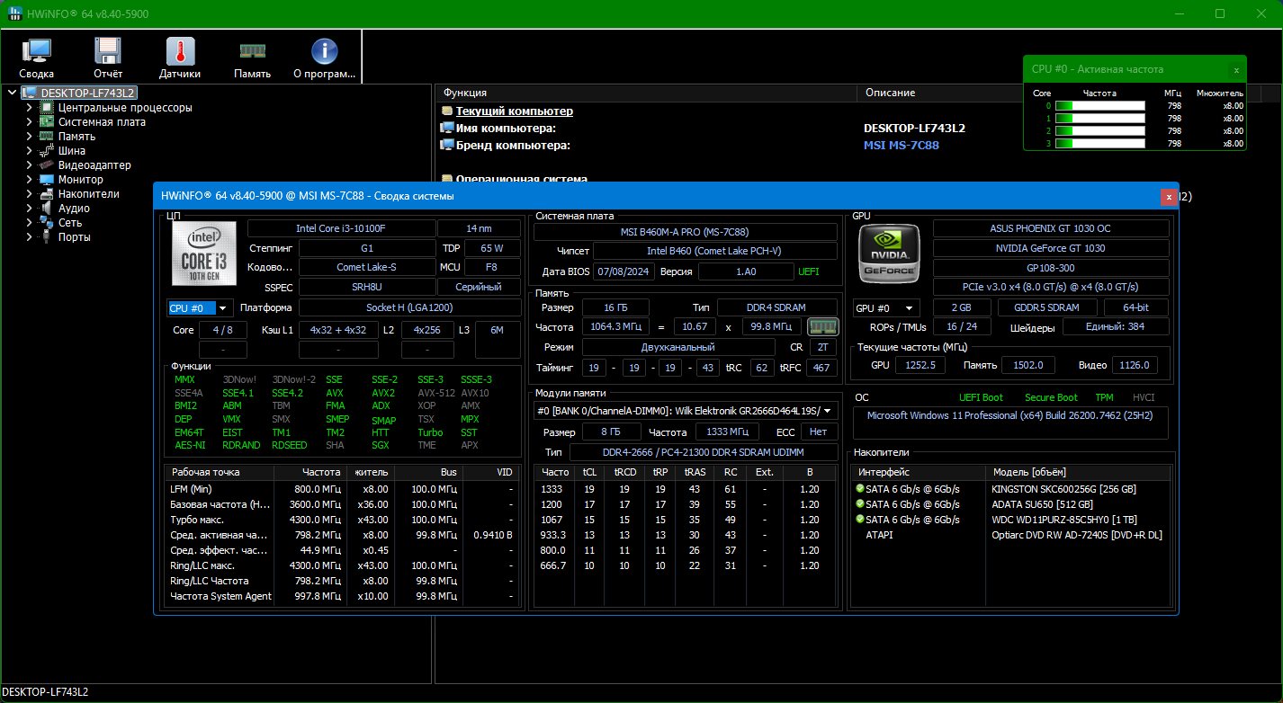 HWiNFO - мощный информационный инструмент, который собирает важные данные о состоянии аппаратных частей компьютера,