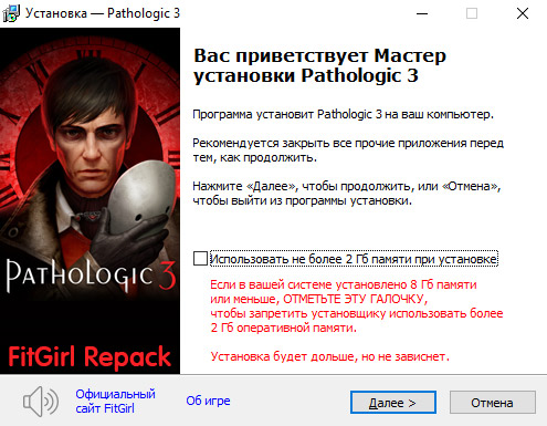 - Репак основан на ISO-образе Pathologic.3-RUNE: rune-pathologic.3.iso (34,875,539,456 байт)