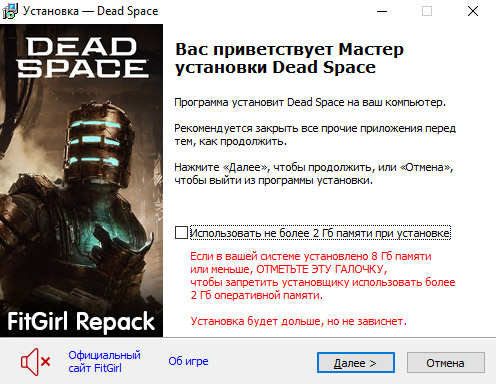 - Репак основан на P2P-релизе Dead.Space.Remake.PROPER-voices38: voices38-dead.space.remake.proper.iso (35,068,682,240 байт)