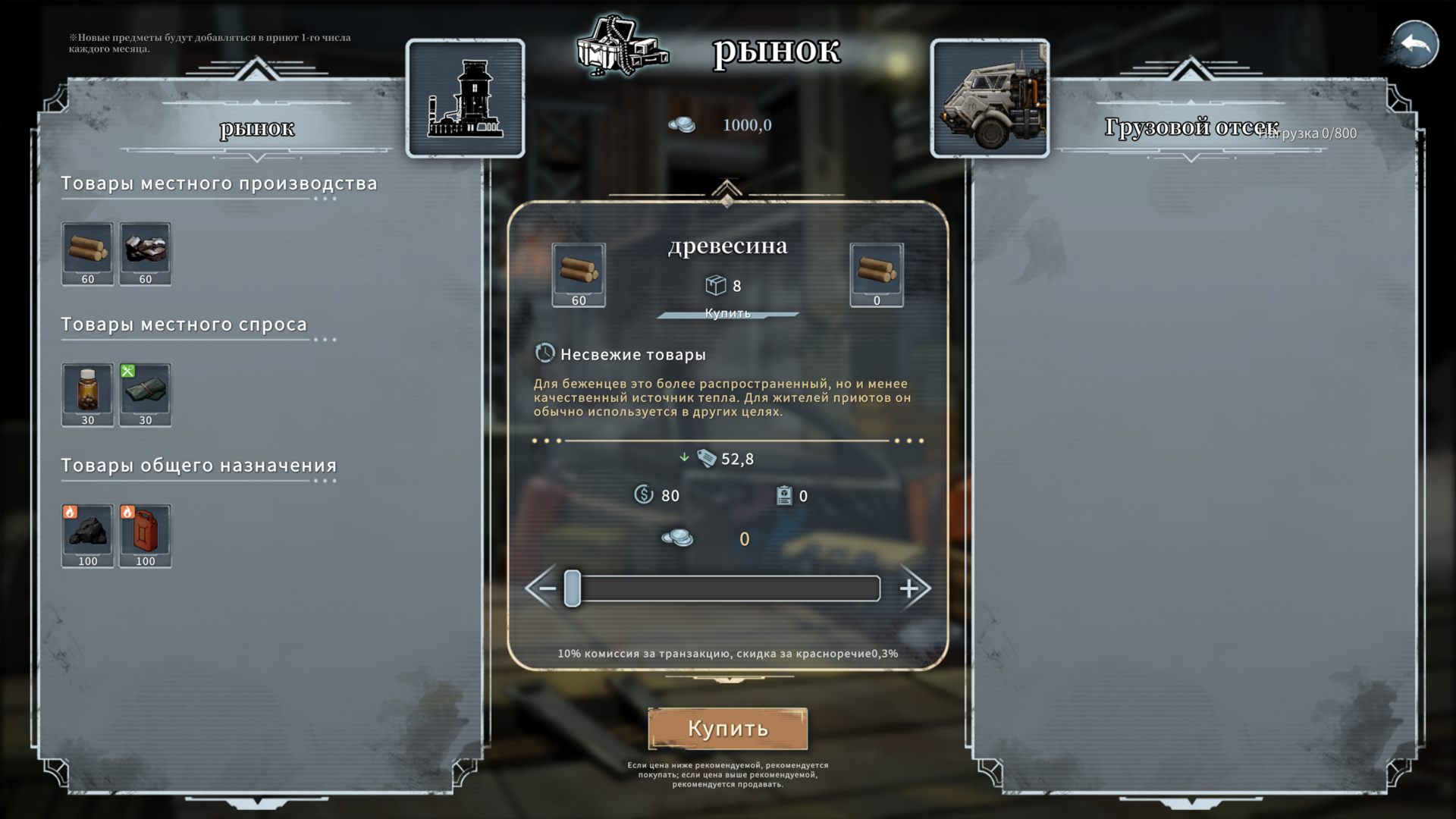 - Исследуй путь развития и управления - Где есть люди - там есть рынок. В каждом убежище можно покупать и продавать разные товары, а беженцы в пути могут обменять свои ценности на припасы. Прояви деловую хватку и завоюй своё место в этом мире.