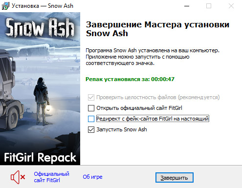 - После установки доступна опция проверки контрольных сумм всех файлов, чтобы убедиться, что репак установился нормально