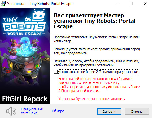 - Репак основан на ISO-образе Tiny.Robots.Portal.Escape-TENOKE: tenoke-tiny.robots.portal.escape.iso (2,058,027,008 байт)