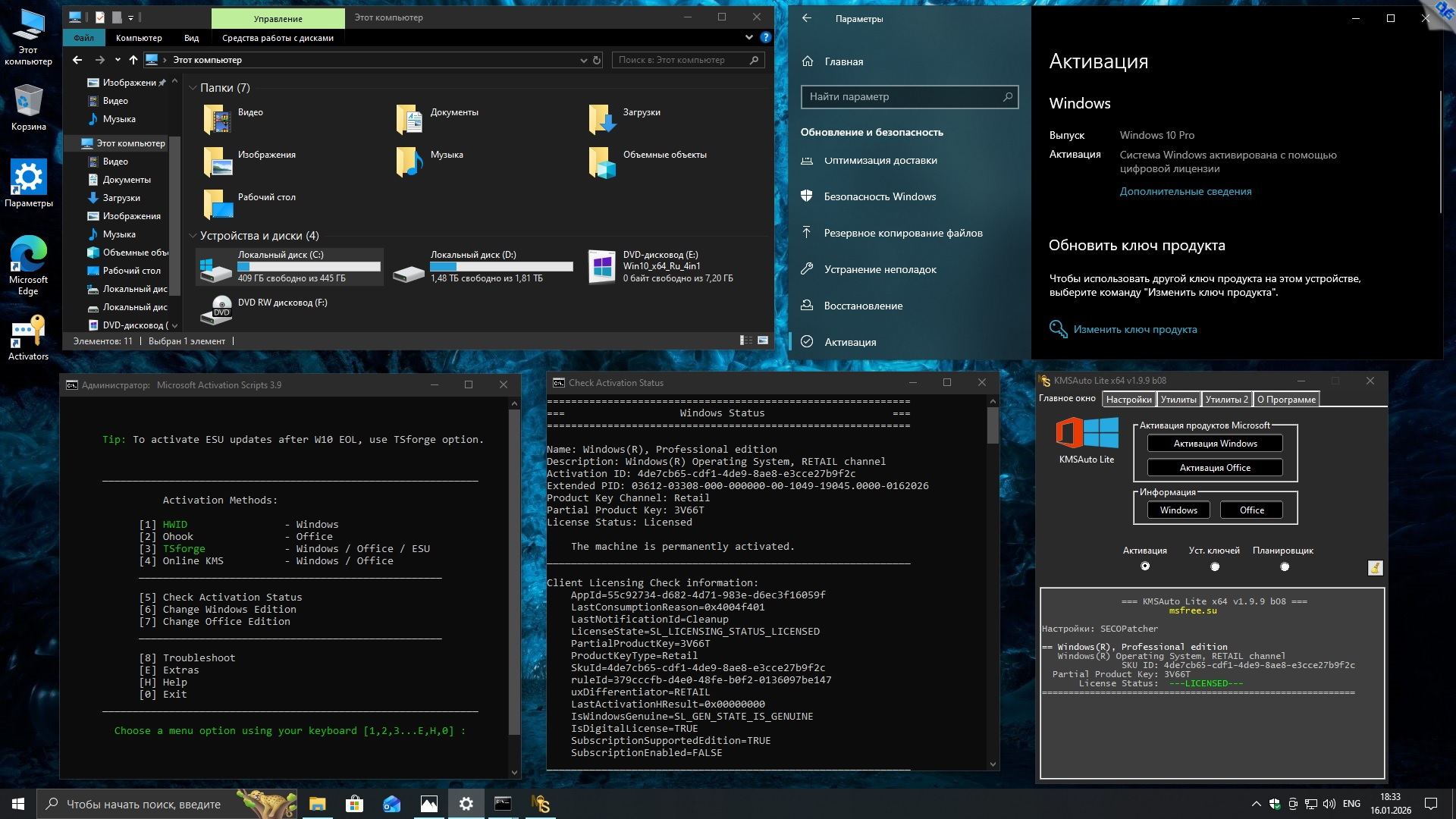 borcov1987 есть такая штука Microsoft Activation Scripts (MAS), она активирует легально любую версию Винды