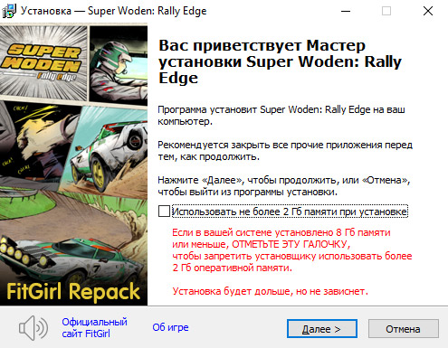 • Репак основан на ISO-образе Super.Woden.Rally.Edge-TiNYiSO: tn-superwodenrallyedge.iso (1,578,090,496 байт)