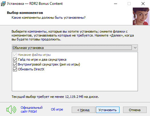 - Возможность не скачивать и не устанавливать бонусные компоненты: в первом содержатся игровой гайд и два саундтрека, во втором - полный игровой рип динамической музыки