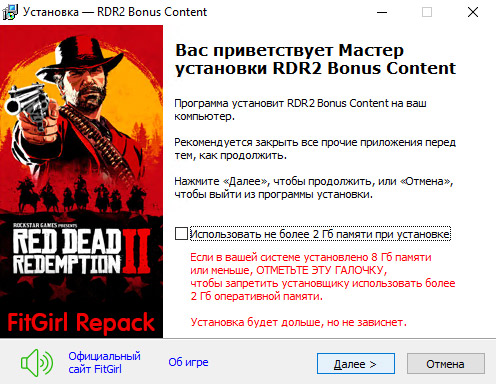 - Для установки репака требуется минимум 2 Гб свободной оперативной памяти (включая виртуальную)