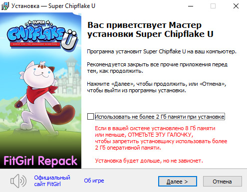 - Для установки репака требуется минимум 2 Гб свободной оперативной памяти (включая виртуальную)