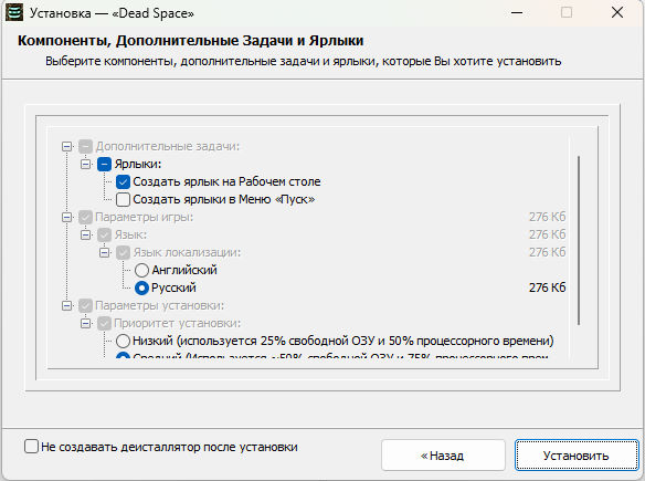 Перед началом установки рекомендуется завершить работу фоновых программ, в том числе антивирусов! 1. Запустить setup.exe. 2. Следовать инструкции установщика, при необходимости отмечая нужные пункты Компонентов. 3. Дождаться окончания установки игры (правый прогресс-бар показывает общий ход установки). 4. Играть, запустив игру с ярлыка на рабочем столе (либо из-под меню ПУСК)