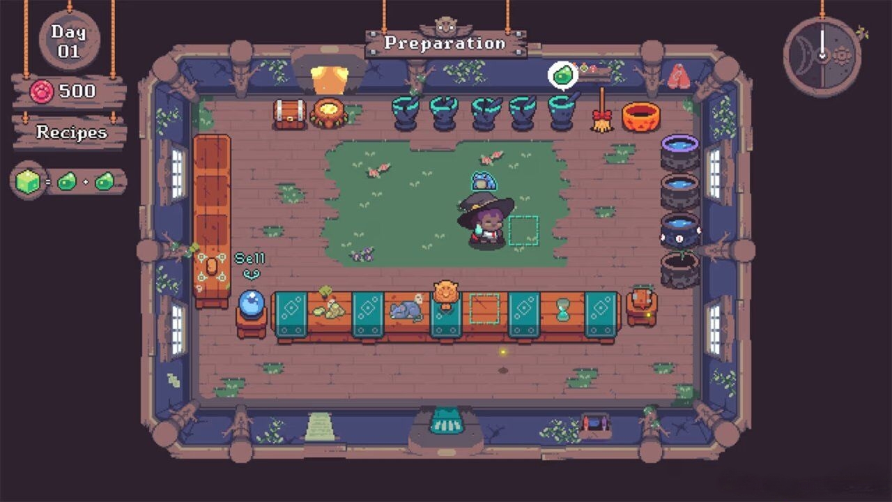 Расширение: покупайте новые ресурсы, ступки и многое другое, чтобы улучшить свой магазин! Существуют различные этапы, такие как этап упаковки, где вы можете купить украшения, питомцев и добавить новые рабочие столы. Управляйте своим магазином по производству миньонов в течение дней и ночей в лесу, пещере и пустыне – этот большой мир – ваша устрица маленькой ведьмы.