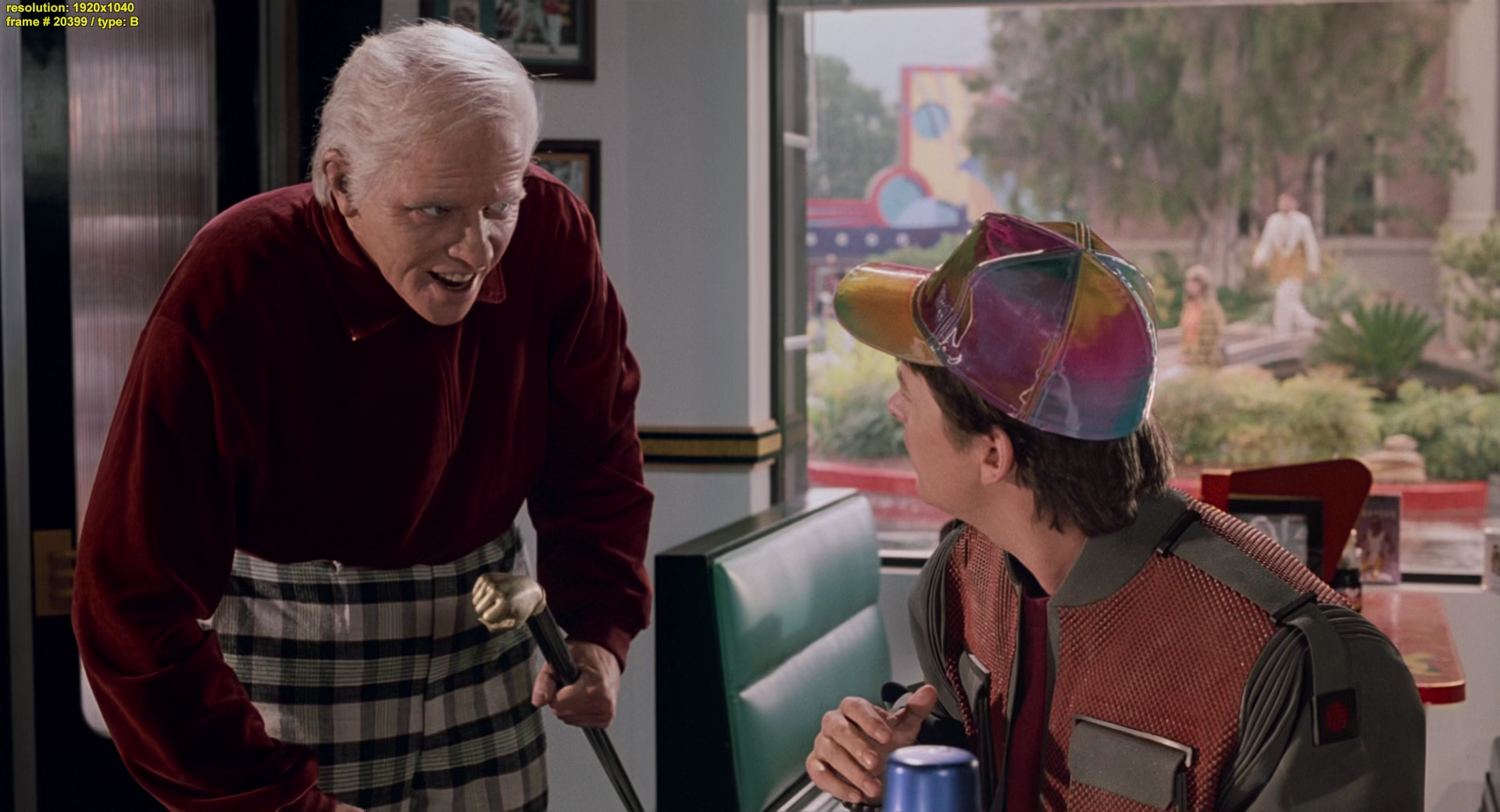 Меню 00:00:00.000 : :1. Main Titles 00:04:13.544 : :2. Late For School 00:06:47.281 : :3. The Slacker 00:11:45.246 : :4. The Family McFly 00:18:04.166 : :5. A Time Machine? 00:28:12.273 : :6. Escape From the Past 00:31:30.680 : :7. 1955 00:38:40.693 : :8. Dad the Dork 00:41:22.313 : :9. Calvin & Lorraine 00:47:53.370 : :10. Future Boy & Doc 00:55:53.141 : :11. Marty's Problem 00:58:49.859 : :12. The Matchmaker 01:05:16.787 : :13. Skateboard Hero 01:16:40.304 : :14. The Big Date 01:20:14.643 : :15. The Real George 01:27:23.321 : :16. Johnny B. Goode 01:31:12.049 : :17. Back to the Future 01:41:40.552 : :18. Doc's Decision 01:46:41.436 : :19. Future Shock 01:51:24.511 : :20. Roads? (Credits) Назад в будущее 2 / Back to the Future Part II Страна: США Студия: Universal Pictures, Amblin Entertainment, U-Drive Productions Жанр: Фантастика, комедия, боевик, приключения Год выпуска: 1989 Продолжительность: 01:47:59 Перевод: дублированный, многоголосый закадровый, двухголосый, одноголосый Оригинальная аудиодорожка: Английский Субтитры: Русские, английские Режиссёр: Роберт Земекис / Robert Zemeckis В ролях: Майкл Дж. Фокс, Кристофер Ллойд, Лиа Томпсон, Томас Ф. Уилсон, Элизабет Шу, Джеймс Толкан, Джеффри Вайсман, Кейси Семашко, Билли Зейн, Дж.Дж. Коэн Описание: Продолжение фантастической истории о приключениях американского подростка во времени. На этот раз с помощью модернизированной Доком машины времени Марти из 80-х попадает в будущее. Дети Марти в беде, и их надо выручать. Приходится повозиться со злодеем...