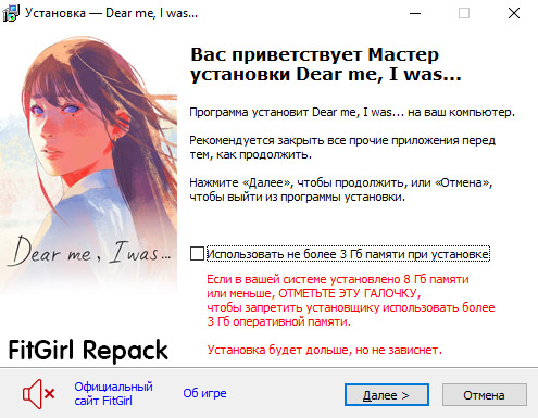 - Репак основан на ISO-образе Dear.me.I.was-TENOKE: tenoke-dear.me.i.was.iso (4,427,782,144 байта)