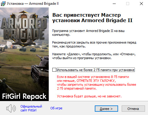 - Для установки репака требуется минимум 2 Гб свободной оперативной памяти (включая виртуальную)