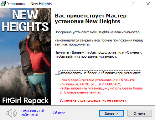 - Репак основан на ISO-образе New.Heights.Realistic.Climbing.and.Bouldering-TENOKE: tenoke-new.heights.realistic.climbing.and.bouldering.iso (27,631,052,800 байт)
