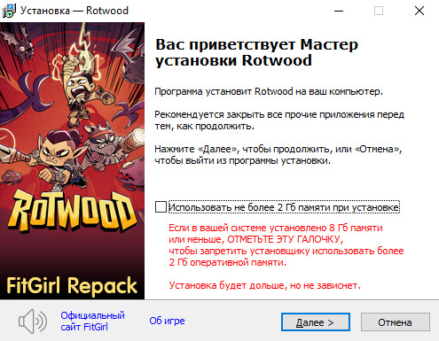 - Для установки репака требуется минимум 2 Гб свободной оперативной памяти (включая виртуальную)