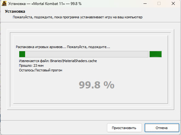 3. Дождаться окончания установки игры (правый прогресс-бар показывает общий ход установки).