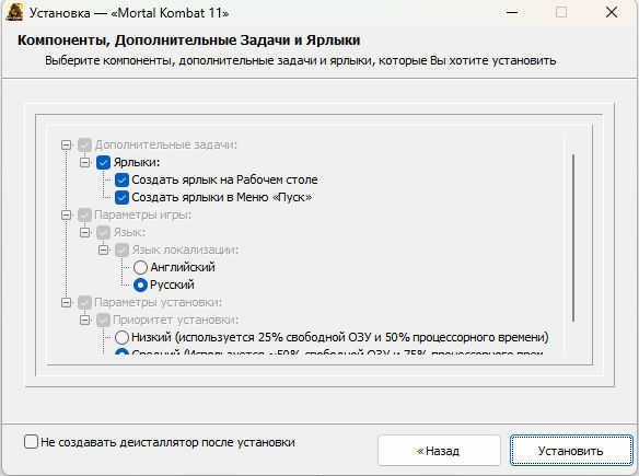 2. Следовать инструкции установщика, при необходимости отмечая нужные пункты Компонентов.