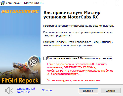 - Репак основан на ISO-образе MotorCubs.RC-TENOKE: tenoke-motorcubs.rc.iso (20,457,076,736 байт)