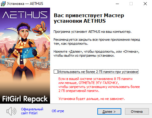 • Для установки репака требуется минимум 2 Гб свободной оперативной памяти (включая виртуальную)