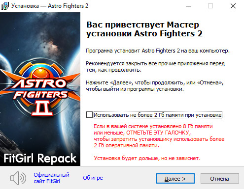 - Репак основан на ISO-образе Astro.Fighters.2-TENOKE: tenoke-astro.fighters.2.iso (6,047,049,728 байт)