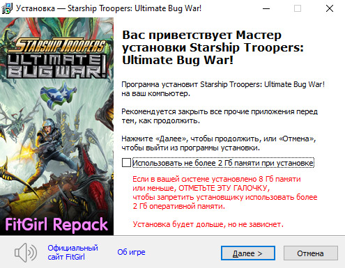 • Репак основан на ISO-образе Starship_Troopers_Ultimate_Bug_War-Razor1911: rzr-starshiptroopersbugwar.iso (7,553,089,536 байт)