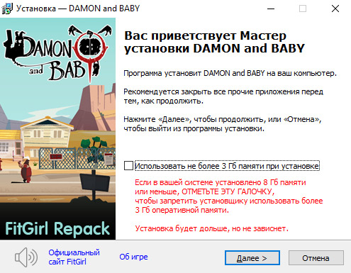 - Для установки репака требуется минимум 3 Гб свободной оперативной памяти (включая виртуальную)